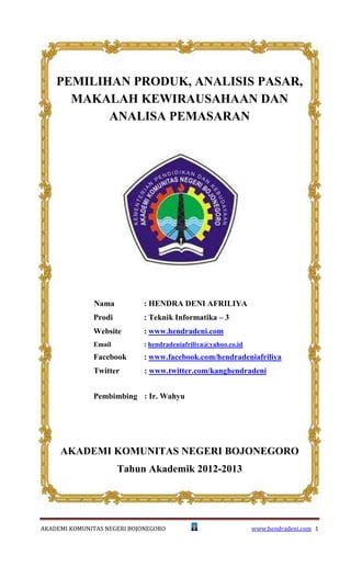Kewirausahaan Analisis Produk Pasar Dan Pemasaran