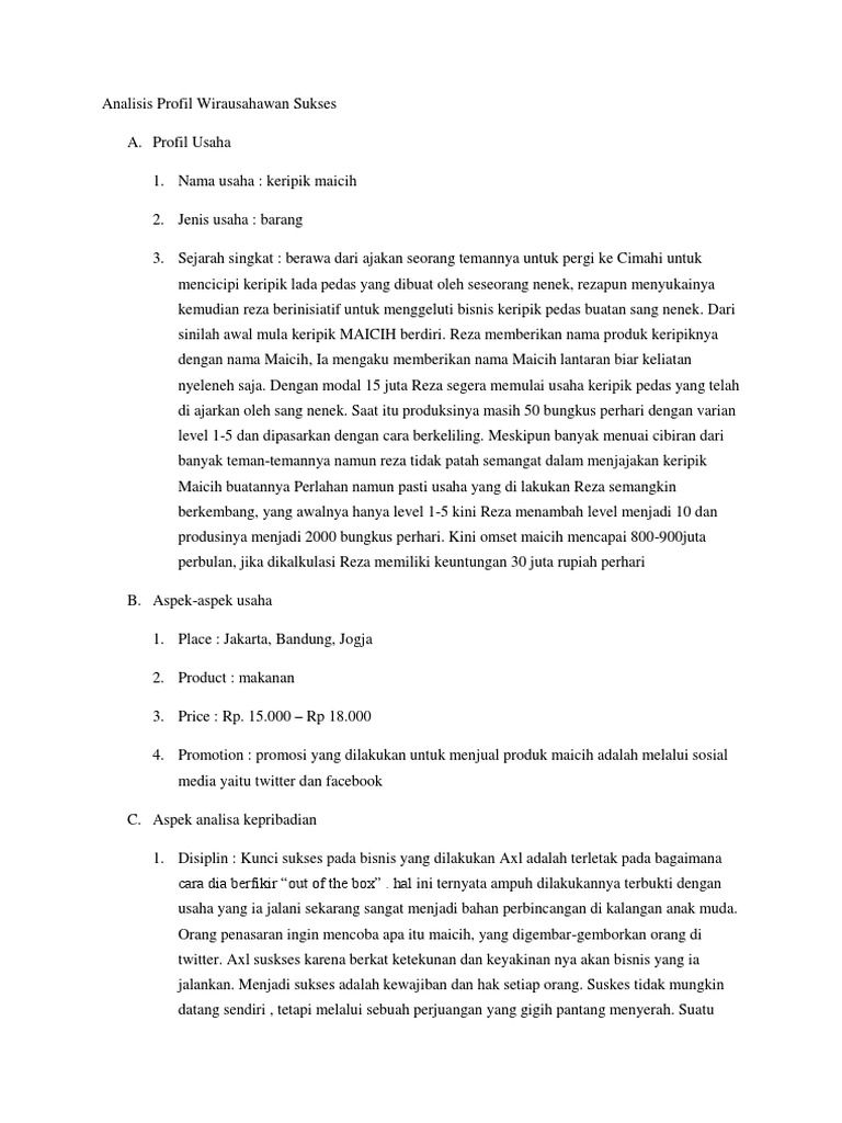 Analisis Profil Wirausahawan Sukses Pdf